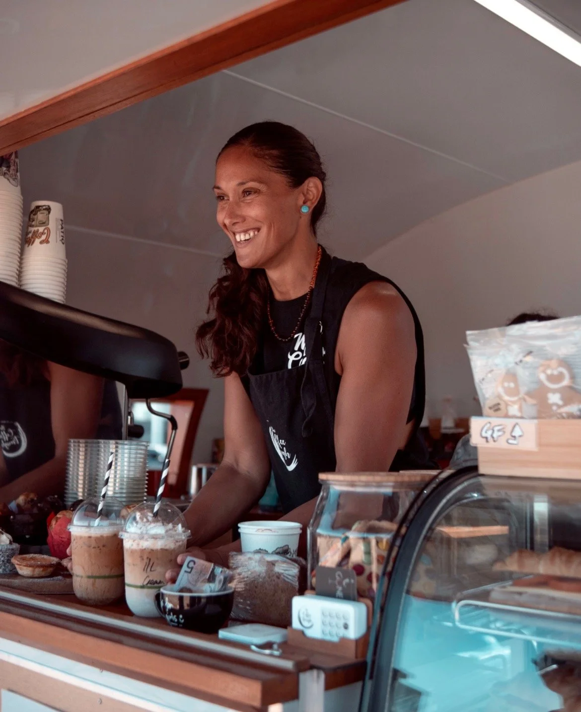 We love seeing our locals, walkers, surfers, cyclists and families pop by or hang out, enjoying the coffee and chatting with mates. On weekends my two young daughters assist in serving our customers, learning the family trade and making a buck of course!